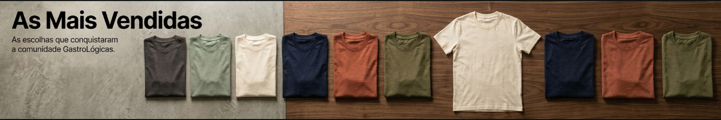 As escolhas de quem vive a gastronomia. Aqui estão as camisetas mais vendidas da GastroLógicas — as peças que mais conquistaram chefs, profissionais e apaixonados pela cozinha em todo o Brasil. Modelos que representam identidade, orgulho e pertencimento para quem entende que a gastronomia vai além do trabalho. Se são as mais escolhidas, é porque fazem sentido para quem veste.