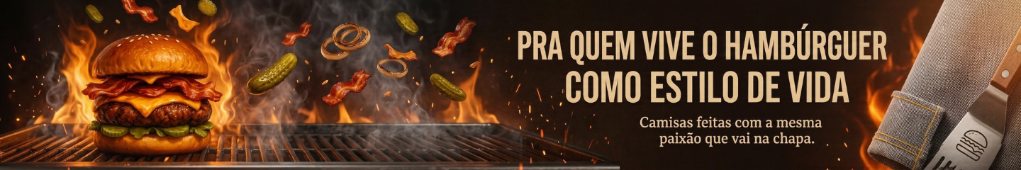 Tem gente que vê um hambúrguer. A gente vê propósito. Aqui, cada detalhe importa: o cheiro da carne selando na grelha, o pão que abraça sem desmanchar, o queijo derretido no ponto em que ele quase conta um segredo. É mais que um lanche — é um ritual. É o momento do dia em que tudo para. Onde a fome encontra o aconchego. Se você já esperou ansiosamente aquele pedido chegar como quem aguarda um velho amigo… Se já discutiu a textura de um blend como quem analisa uma obra de arte… Se sabe que um bom lanche começa antes da primeira mordida — no olhar, no cheiro, na expectativa… Então essa categoria foi feita pra você. Aqui reunimos estampas que falam a sua língua: com gordura nas entrelinhas, personalidade em cada fio de queijo, e orgulho de quem sabe que o hambúrguer certo é aquele que respeita a tradição e inventa moda ao mesmo tempo. Porque amar hambúrguer não é só ter um favorito. É ter histórias, vícios, manias e memórias ligadas a cada lanche que marcou um momento da sua vida.
