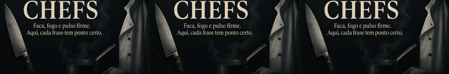 CHEFS é uma coleção feita pra quem carrega no peito o peso do avental e o orgulho de viver a cozinha como missão. Aqui não tem glamour de reality. Tem corte limpo, mão calejada e entrega diária. Cada frase é um manifesto — tipografias afiadas como faca de cozinha, com a voz de quem lidera bancada, resiste à pressão e serve com verdade. Pra quem é chef. E sabe o que isso custa.