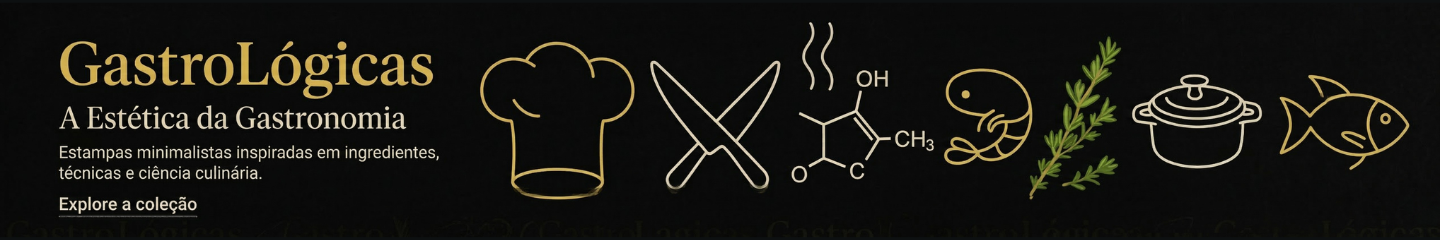 A GastroLógicas é uma coleção criada para quem vive a cozinha com intensidade, técnica e afeto. Cada estampa traduz um pedaço do universo gastronômico — dos aromas que marcam a memória aos utensílios que carregam histórias. Aqui, ingredientes viram personagens, ferramentas ganham vida e o humor da rotina culinária aparece com elegância, minimalismo e personalidade. Inspirada no dia a dia de chefs, cozinheiros, estudantes e apaixonados por gastronomia, a coleção combina arte, criatividade e autenticidade. As peças foram pensadas para quem sabe que cozinhar é mais do que preparar pratos: é pensar, provar, errar, acertar, experimentar e sentir. É lógica, mas também é instinto. É técnica, mas também é poesia. Cada design foi desenvolvido com exclusividade, prezando por estética limpa, detalhes inteligentes e referências culinárias que só quem é do meio identifica — transformando cada peça em uma conversa secreta entre apaixonados pela cozinha. Vista o sabor, a técnica e a alma da gastronomia. Vista a GastroLógicas.