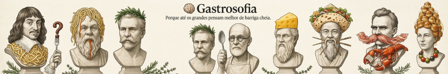 Uma coleção pra quem acredita que a cozinha também é lugar de pensamento profundo — e que filosofia e comida dividem a mesma mesa. Em Gastrosofia, os grandes pensadores ganham formas de bustos realistas, cabeças cartunescas ou esculturas cômicas, sempre mergulhados em alguma reflexão gastronômica. Marx com uma colher, Freud com um pão na mão, Sartre cercado por panelas existenciais. É arte com fome, ironia com textura e filosofia servida com molho e riso.