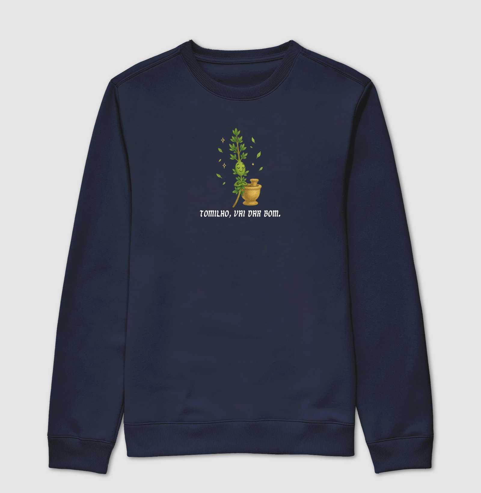 Pequeno, mas persistente. O tomilho cozinha devagar, infunde sabor e nunca perde a fé. Ele não entra pra aparecer — entra pra transformar. Nessa estampa, surge com galhinhos finos, folhas delicadas e aquele ar sereno de quem já viu muita receita dar certo no tempo certo. Uma peça pra quem acredita que o segredo tá na calma, no fundo da panela — e na certeza de que vai dar bom. Tomilho, vai dar bom. E vai mesmo.